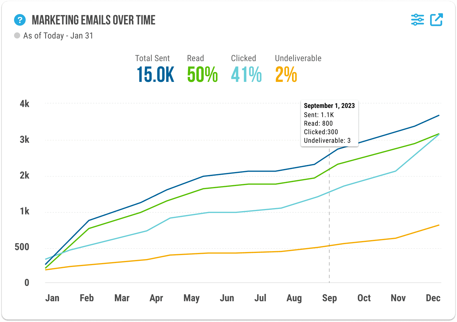 Performance goals can be visualized across a long period of time or multiple programs/brands.