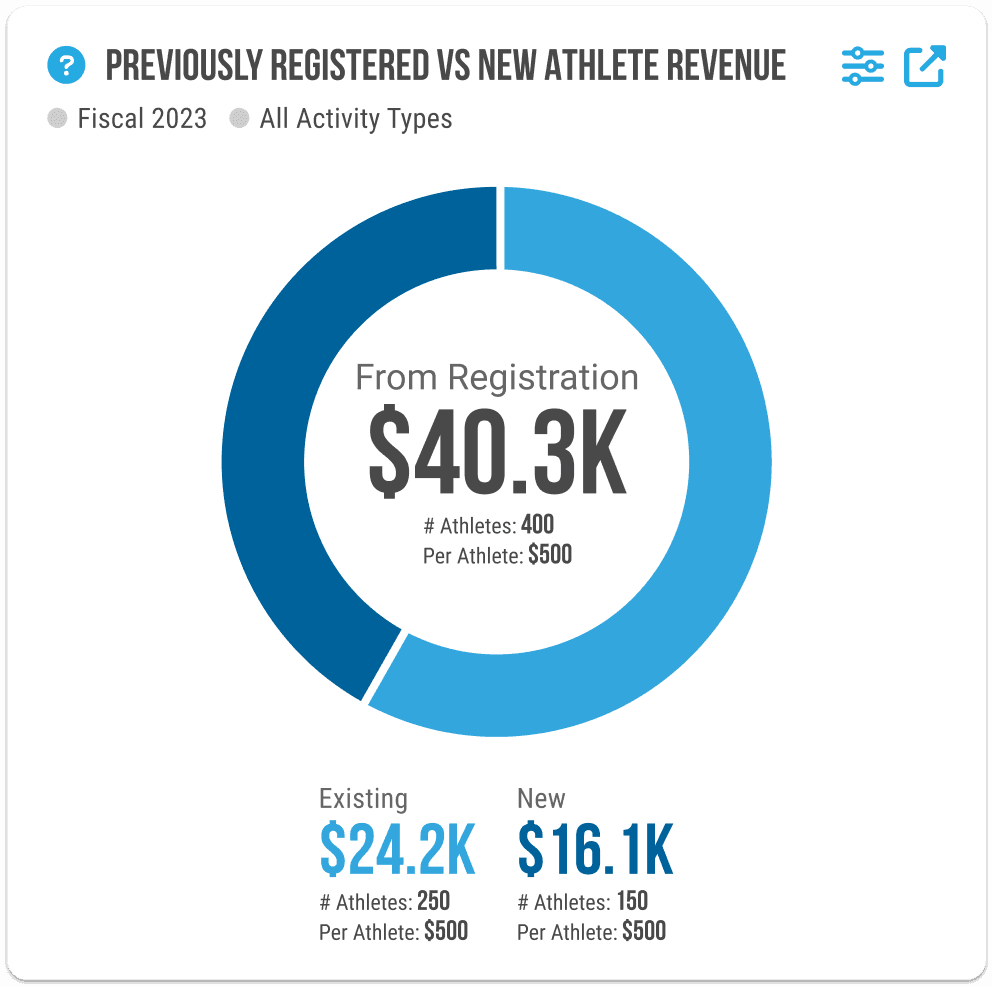 How might we summarize registration and financial insights to guide athletic organizations' decision making?