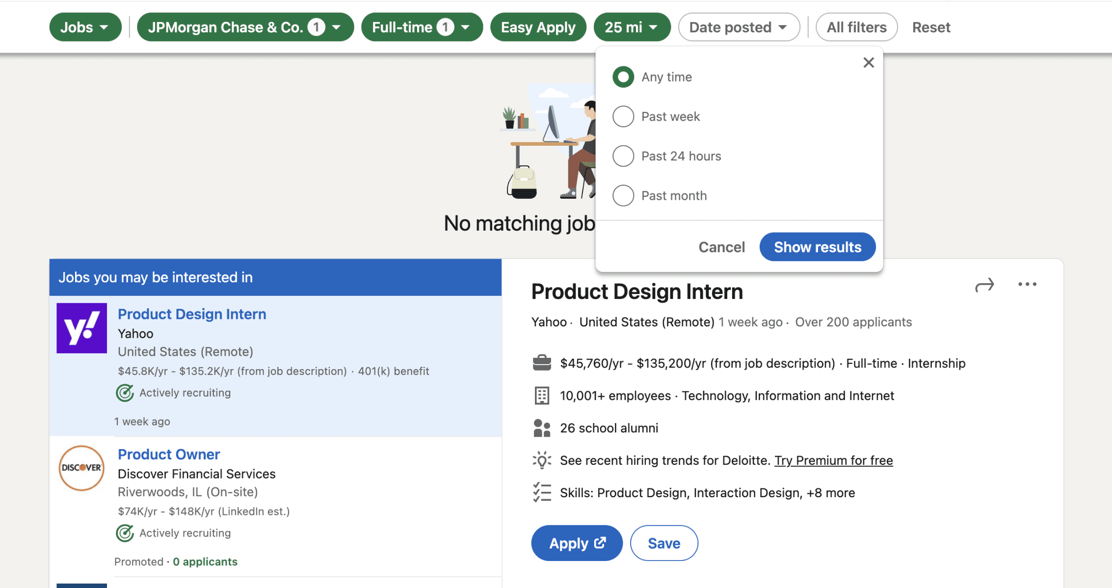 As I planned to introduce a series of filters for data refinement, I looked towards LinkedIn's model of filtering, which highlights active filters but offers a range of auxiliary filters via All Filters. While we could not have our own All Filters panel due to technical limitations, we planned to show additional filters on scroll of the top filter navigation bar.