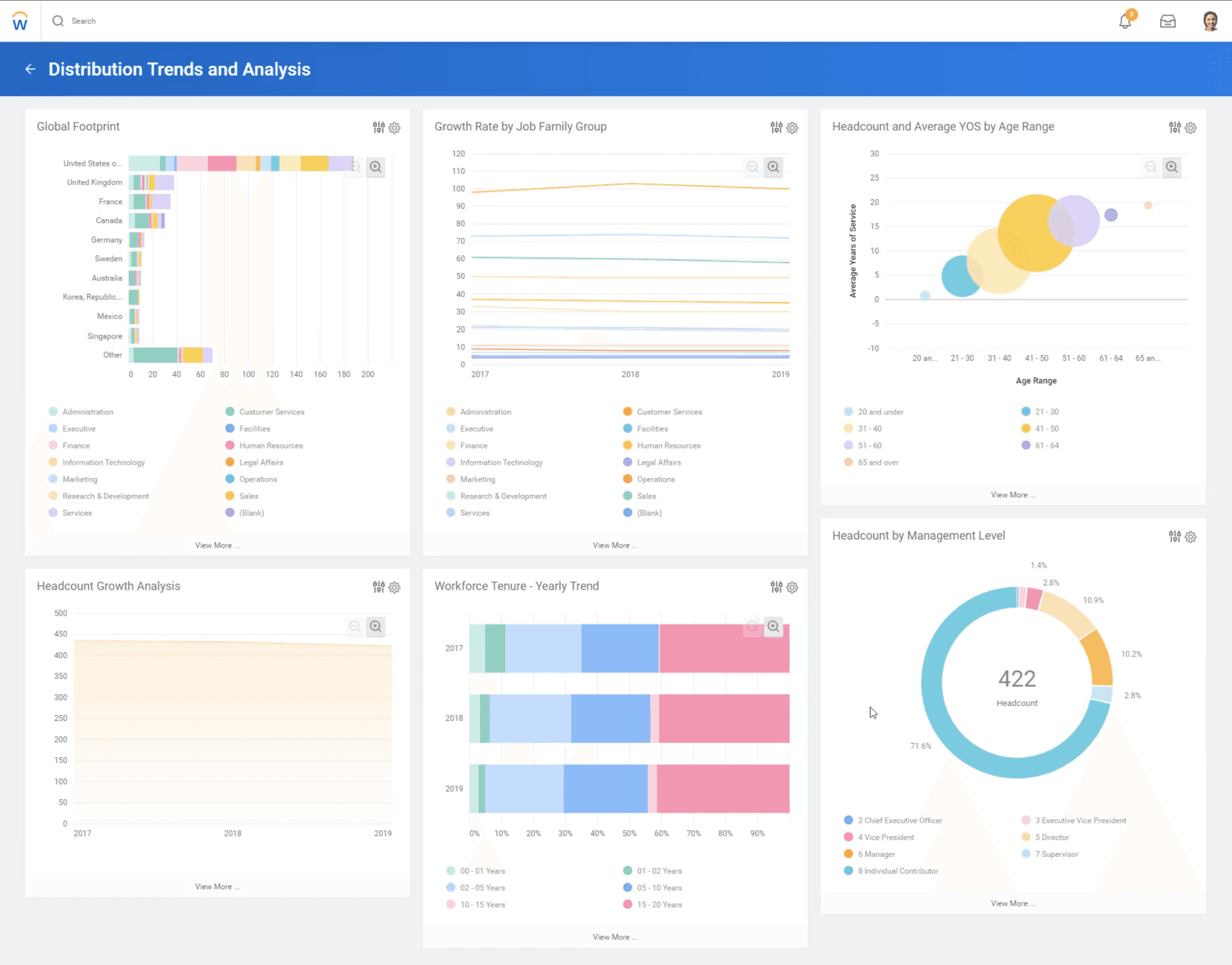 Related averages are grouped in a tile, with color coded rate of changes labeled conveniently below.