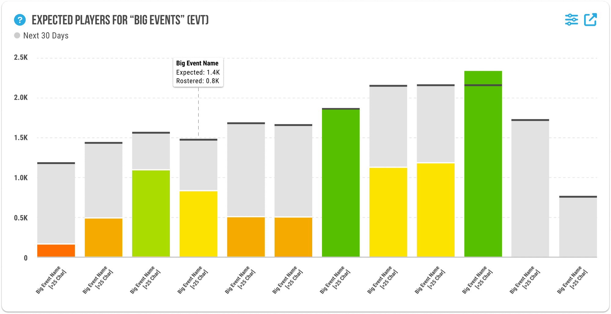 The info button included on each tryout tile links to an auto-generated retention list, on a separate page, with filters that can be modified from there.