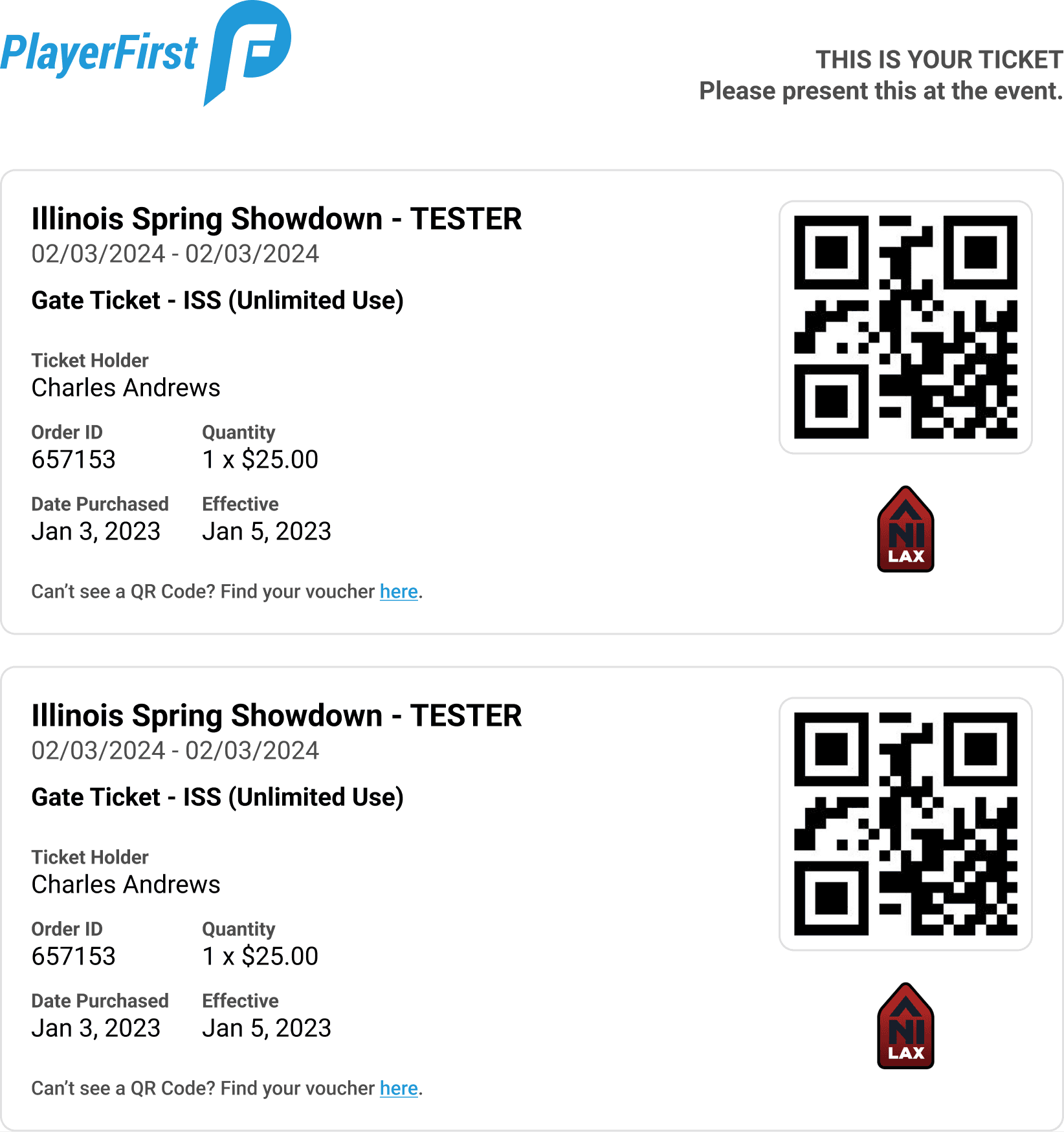PlayerFirst Digital Access Ticket Template