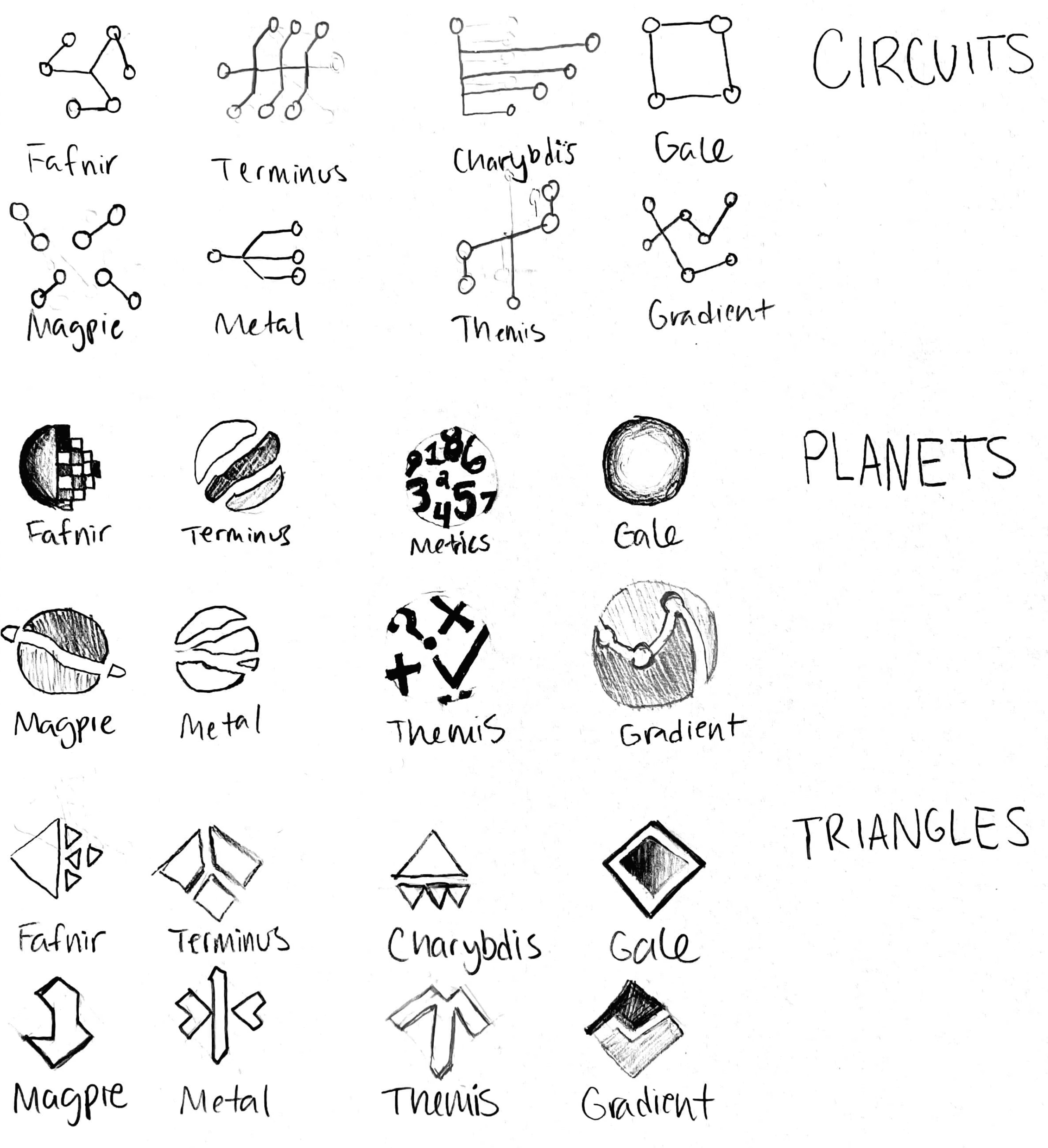 In developing the final suite of icons, we began by exploring a range of themes. I focused on simplicity, experimenting with concepts like planets and circuits that aligned with MORSE’s brand. However, these themes felt too literal and constrained options for the expanding icon suite.